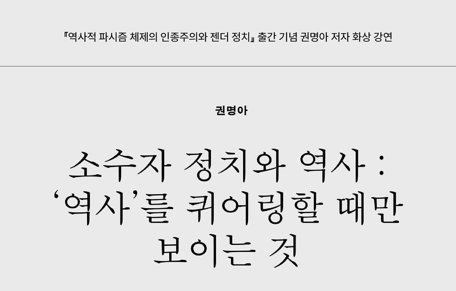초대! 『역사적 파시즘 체제의 인종주의와 젠더 정치』 권명아 저자 강연 (1월 11일 일요일 오후 2시30분)
